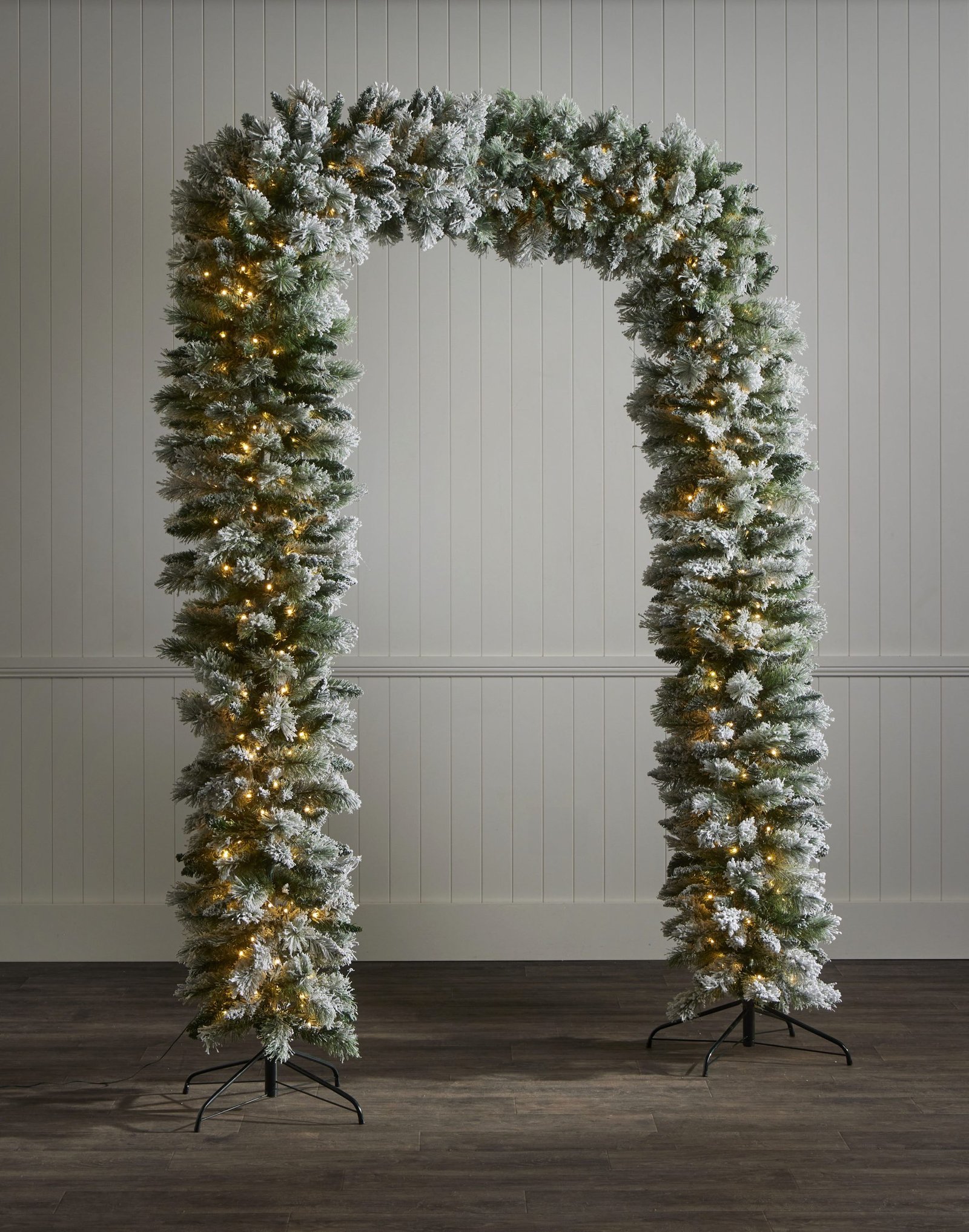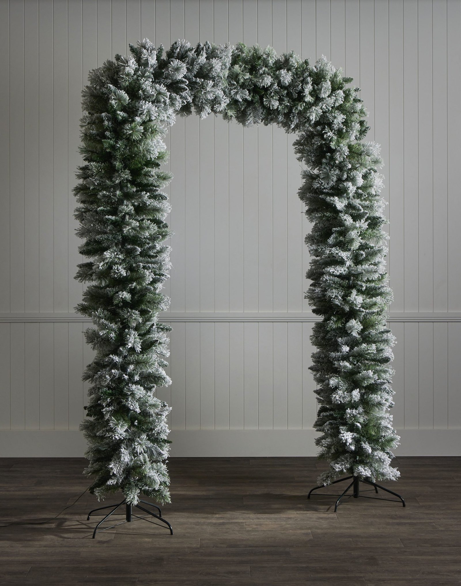 Transform any entrance into a winter wonderland with this beautifully crafted 8ft (2.4 m) pre-lit door arch. Designed with a luxurious mix of PVC traditional and needle pine branches, this arch features a premium, eco-friendly snow flocking for a realistic snow effect, creating a stunning centerpiece for holiday décor.