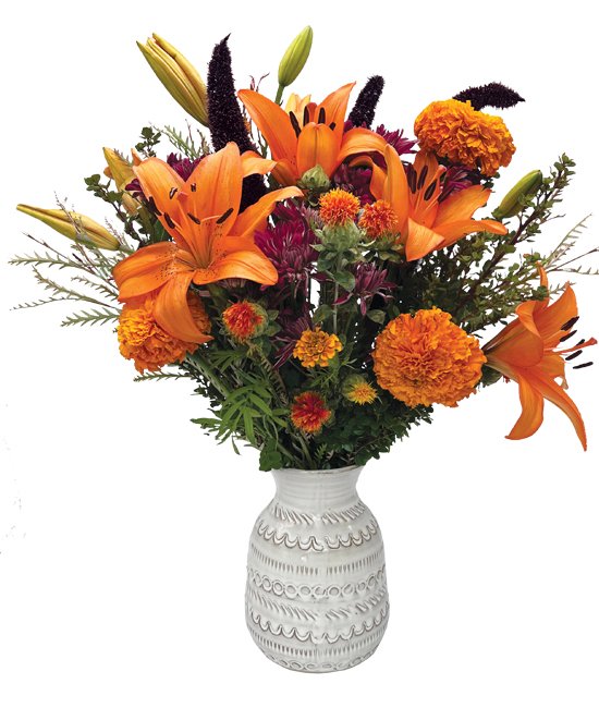 Orange, the color of joy and creativity is definitely shown in this radiant bouquet. Promoting a feeling of wellness, energy and rejuvenation for anyone to enjoy.