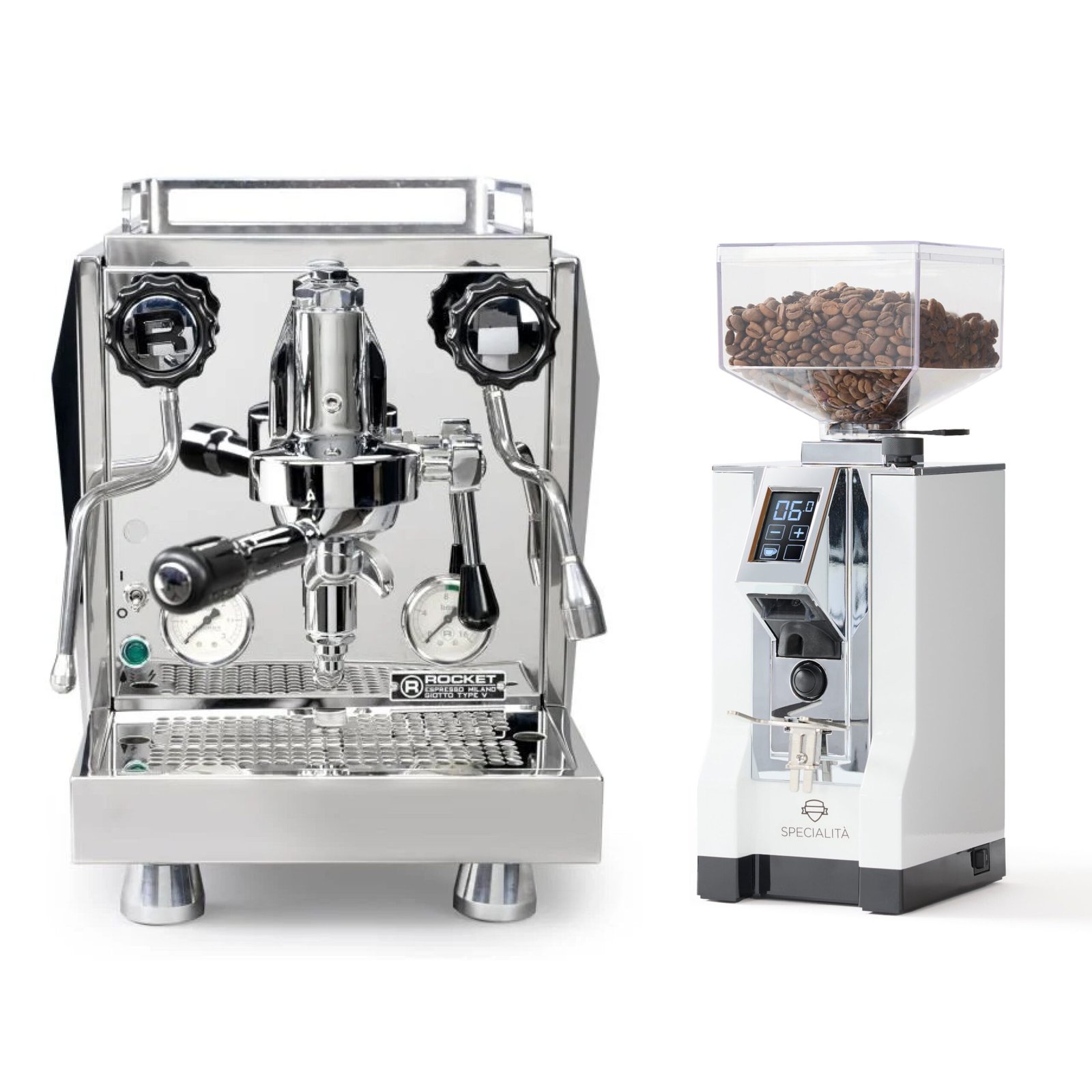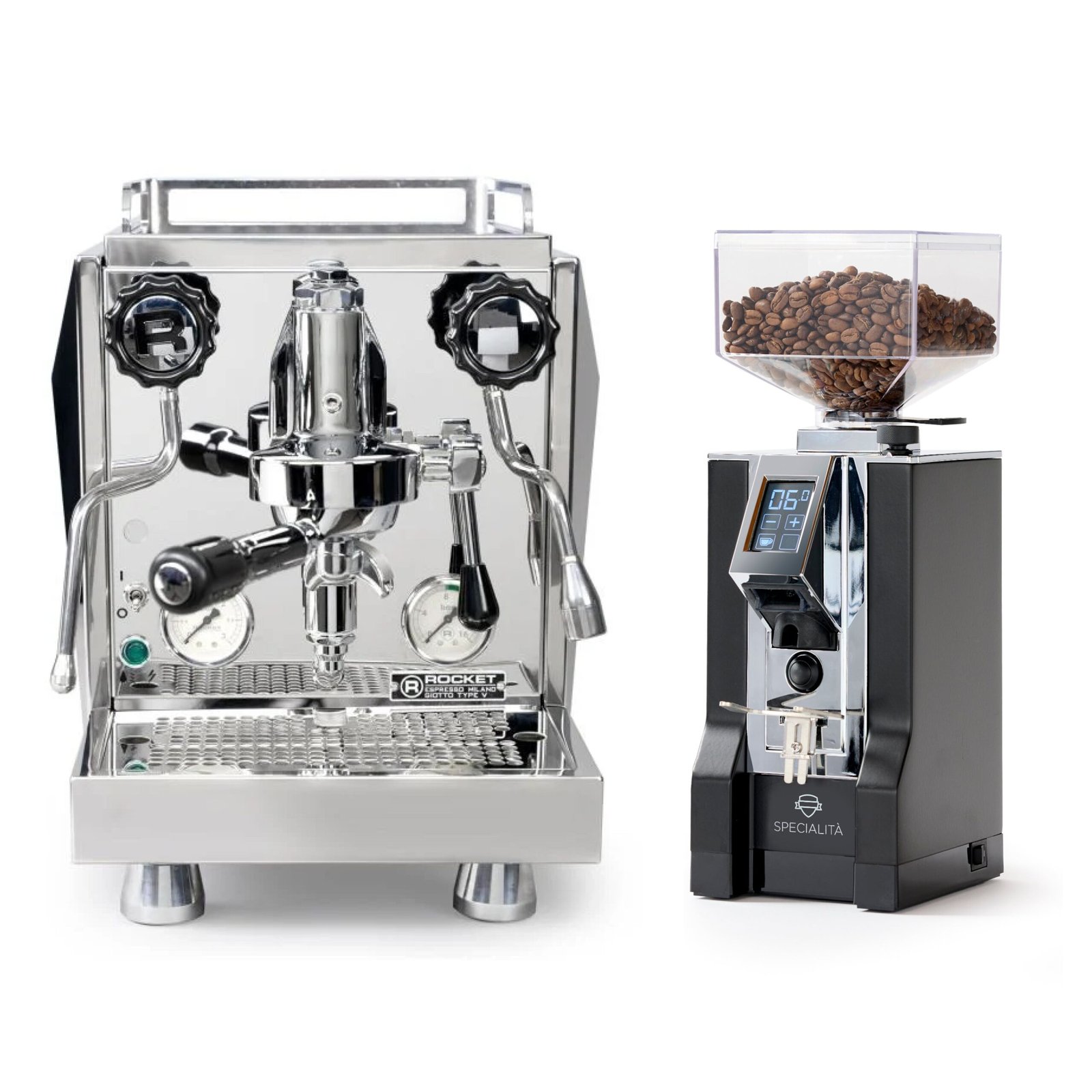 Make your home espresso setup something special with the Rocket Espresso Giotto V Specialita Bundle. Carefully selected to make the most of your home cafe, this espresso bundle includes the classic Rocket Espresso Giotto Timer Type V, a machine packed with prosumer features like an E61 brew group, PID temperature control, and a powerful 1.8L heat-exchange boiler for simultaneous brewing and steaming. Paired to match is the Eureka Mignon Specialita; a compact, fast-grinding 55mm espresso grinder with touchscreen-controlled timed dosing, silent grinding, and stepless grind adjustments for high-accuracy espresso. Together, this combo will have you brewing and steaming like a professional for years to come.
