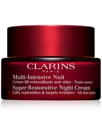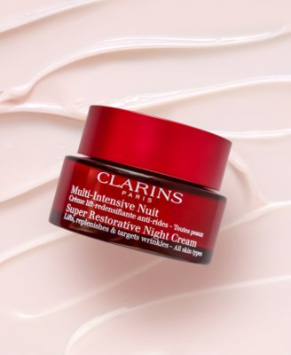 This deeply replenishing night moisturizer for all skin types helps visibly reduce lines, wrinkles, uneven skin tone and slackening resulting from hormonal changes, for a smoother, plumper, visibly “lifted” effect. This beauty innovation contains Clarins’ proprietary Lift-Replenish Duo of harungana extract (as effective as retinol* and gentle on the skin) to help visibly minimize wrinkles and loss of density and gorse extract to take on skin slackening at the source.