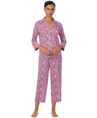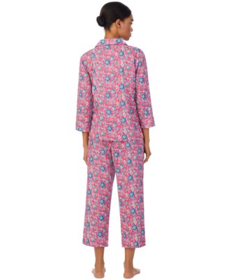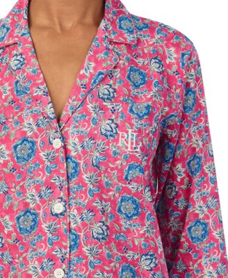Elevate your nightwear with this woven Lauren Ralph Lauren notch-collar pajama set. Crafted from lightweight lawn fabric, this classic silhouette also features iconic trims including pipping and the chest pocket adorned with the embroidered LRL monogram.